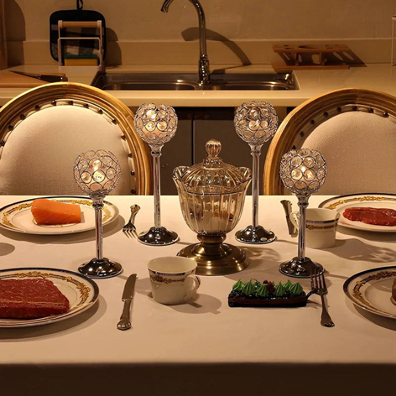 Indulge in the timeless romance of candlelight with the CrystalGlow™ Candle Holder — a radiant trio designed to evoke the elegance of a bygone era. Featuring with lustrous crystal spheres and gleaming metal bases, these candle holders transform any setting into a scene of vintage grandeur. Whether gracing a dining table, mantle, or intimate gathering, they cast a golden glow that stirs the senses and elevates the mood.
