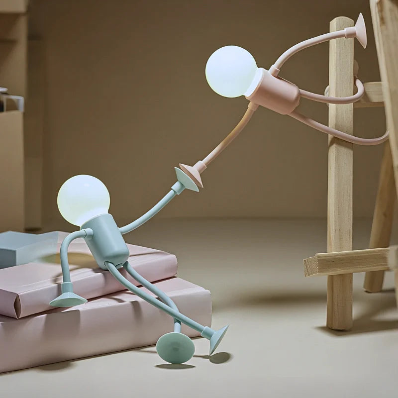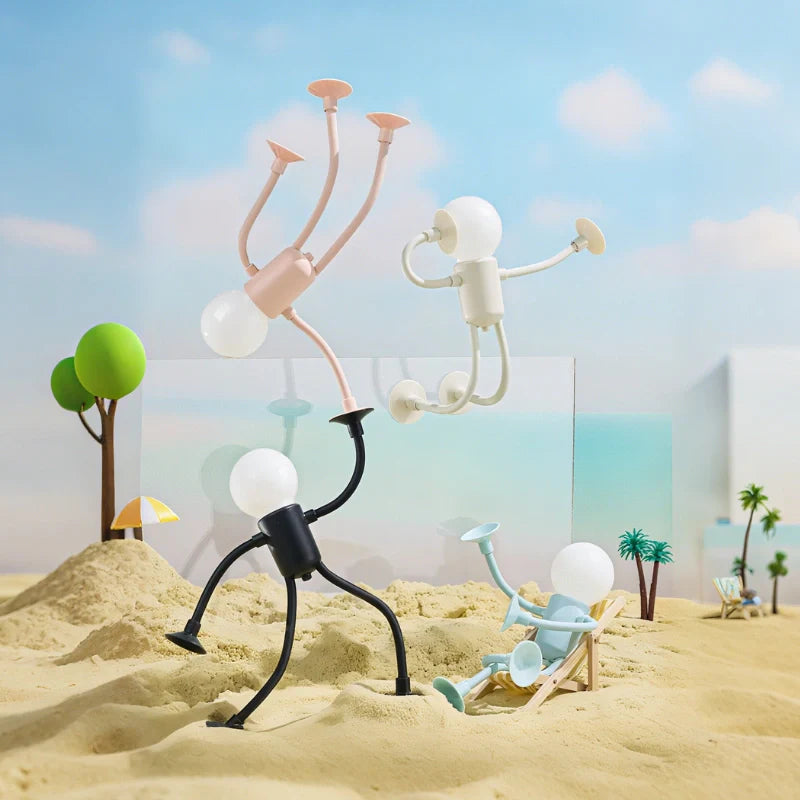Twist, pose, and stick into action! Meet FlexiDudes™, the brilliantly bendable lights with big personality. Whether perched on a shelf, doing yoga on a window, or hanging upside down on a tile, this quirky little lamp brings a warm glow and instant charm to any space. With flexible limbs and suction-cup feet, it grips smooth surfaces and strikes a pose wherever a spark of light and fun is needed.