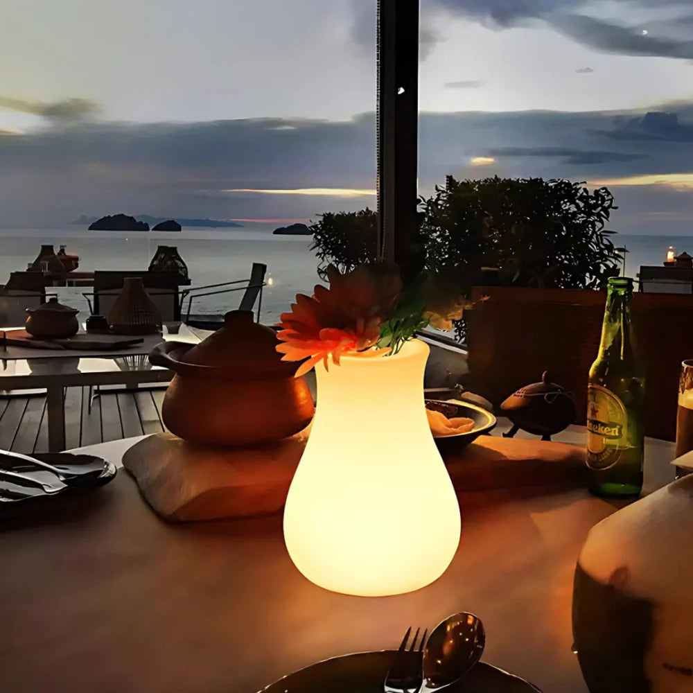 A sculptural fusion of ambient light and natural elegance, the FloraGlow™ Vase brings calm sophistication to any setting—indoors or out. With a hidden compartment for showcasing flowers or greenery, it turns simple arrangements into luminous living accents. Whether placed on a nightstand, patio, or dining table, its soft glow and color versatility effortlessly elevate the mood.