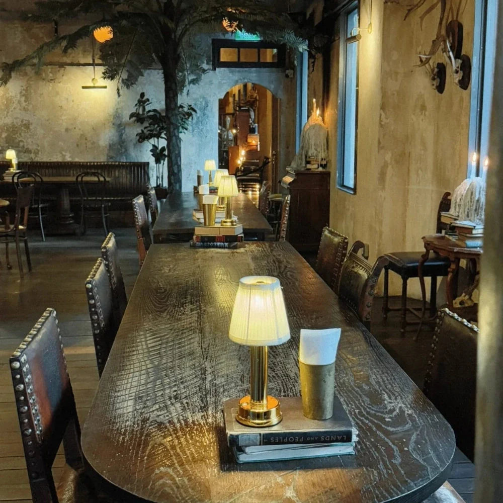 The Retro Elegance Table Lamp blends timeless charm with modern convenience, making it a stylish and functional addition to any home or establishment. Featuring a pleated fabric shade and a sleek aluminum base, its retro-inspired design casts a warm, ambient glow that elevates a wide range of interiors.